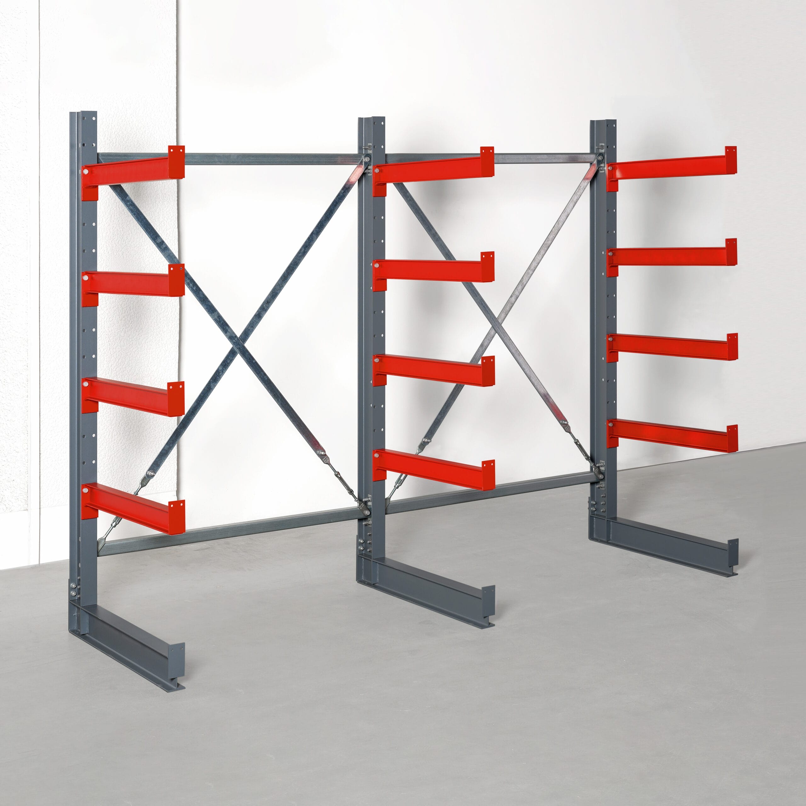 Die Montage erfolgt unkompliziert und ohne spezielles Werkzeug. Bei Bedarf kann es fest im Boden verankert werden, um maximale Stabilität zu gewährleisten. Mit dem handbedienten Kragarmregal erhältst du ein langlebiges und anpassungsfähiges Lagersystem, das Flexibilität und Effizienz vereint.