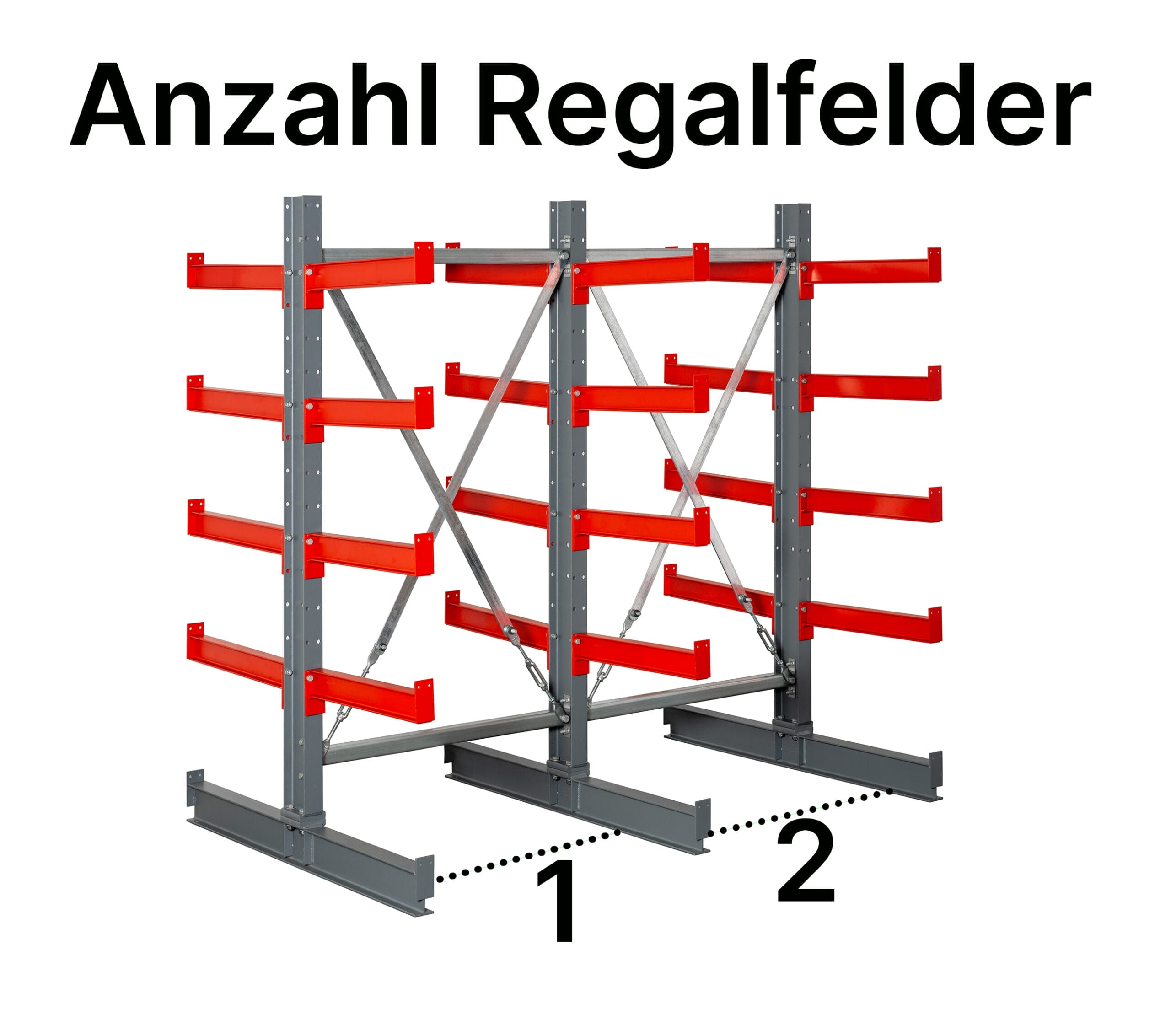 Wähle die Anzahl der Regalfelder für dein Kragarmregal.