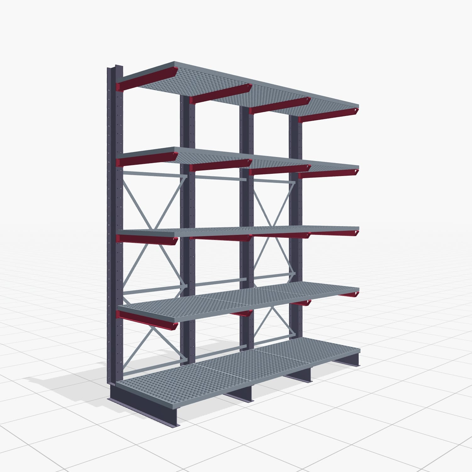 Wähle, ob du Gitterrostböden als Auflage auf deinen Kragarmen auflegen möchtest. Dies dient zum Beispiel als Schutz bei herabfallenden Teilen oder als Auflage für Teile, welche nicht direkt auf den Kragarmen gelagert werden können.