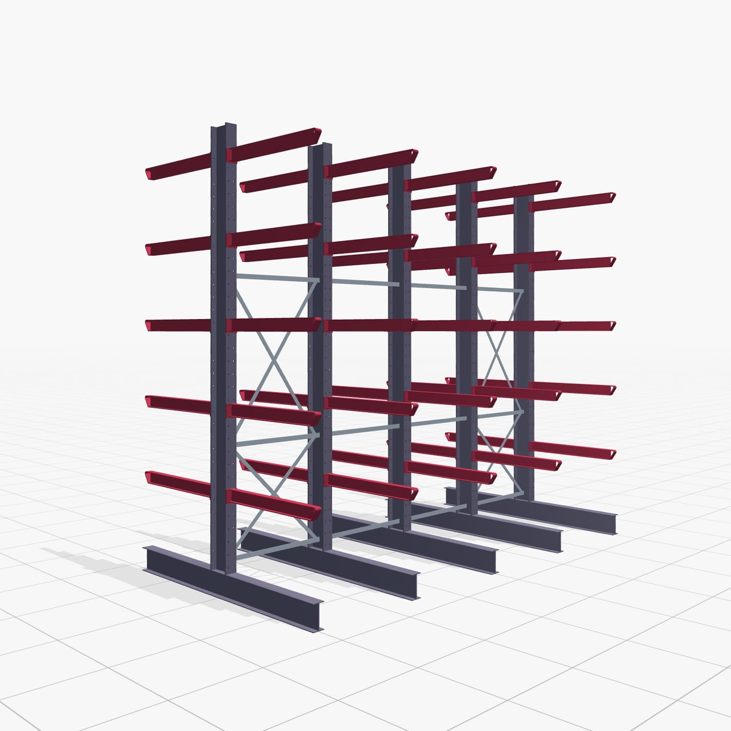 Kragarmregal Staplerbedient KSX 2000, H: 3.500 mm, B: 4100 mm, Armlänge: 1.000 mm, Zweiseitige Nutzung