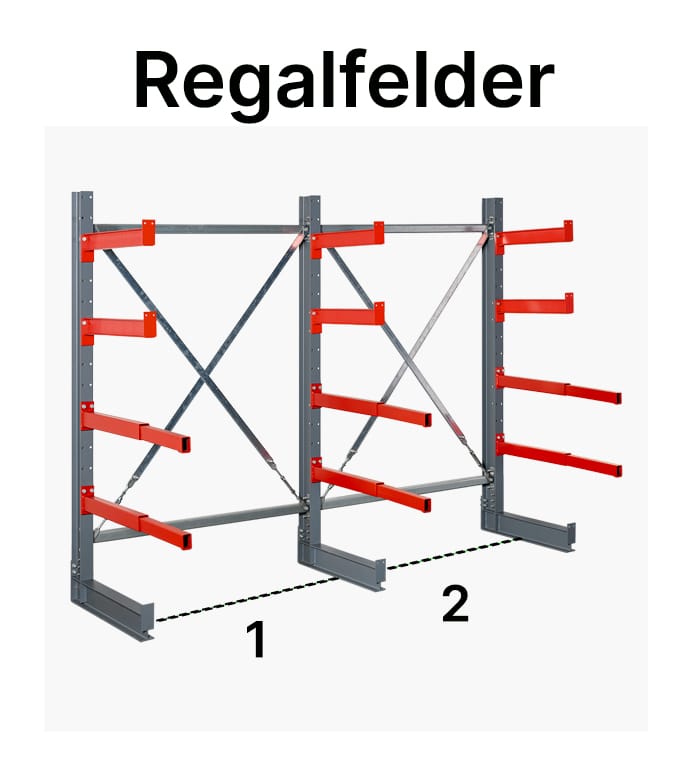 Wähle die Anzahl der Regalfelder für dein Kragarmregal.