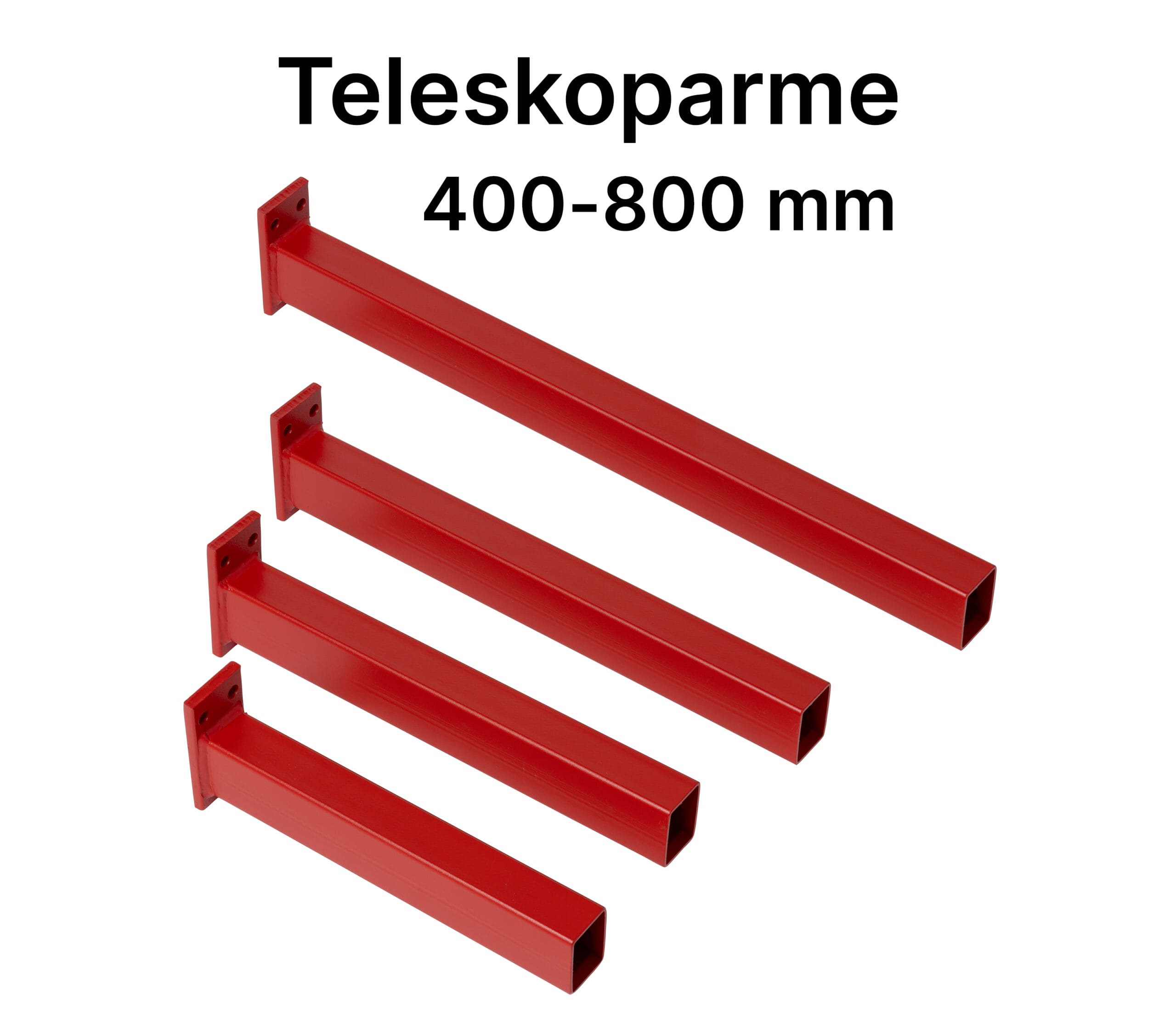Wähle, wie viele Teleskoparme du benötigst. Sie dienen zur einfachen Verlängerung von Kragarmen, um Ware besser kommissionieren zu können.