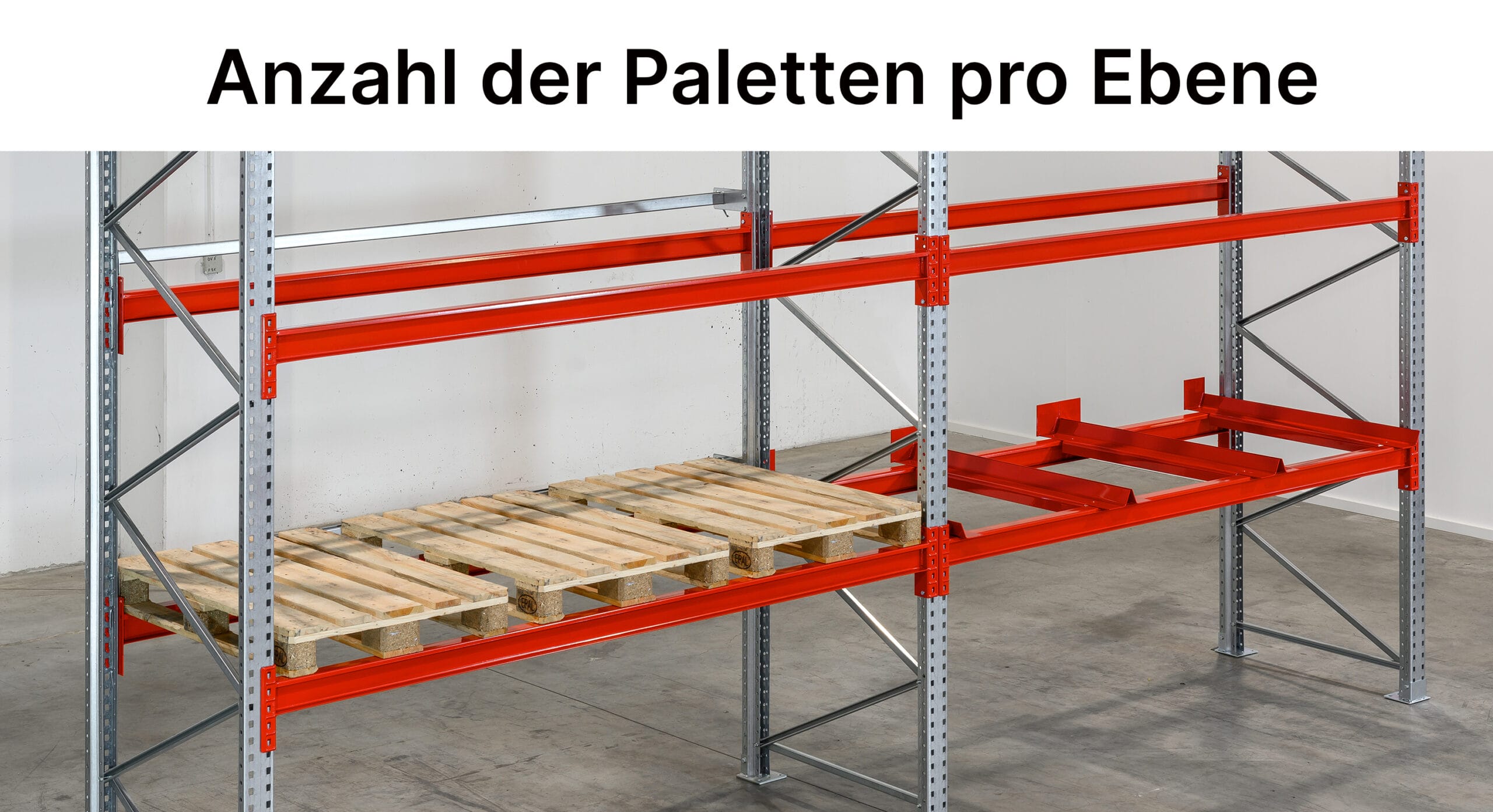 Anzahl Paletten pro EbeneWähle aus, wie viele Stellplätze pro Ebene dein Regal haben soll. Wir schlagen dir automatisch die passende Fachweite vor. Dir stehen folgende Anzahl Stellplätze zur Auswahl: