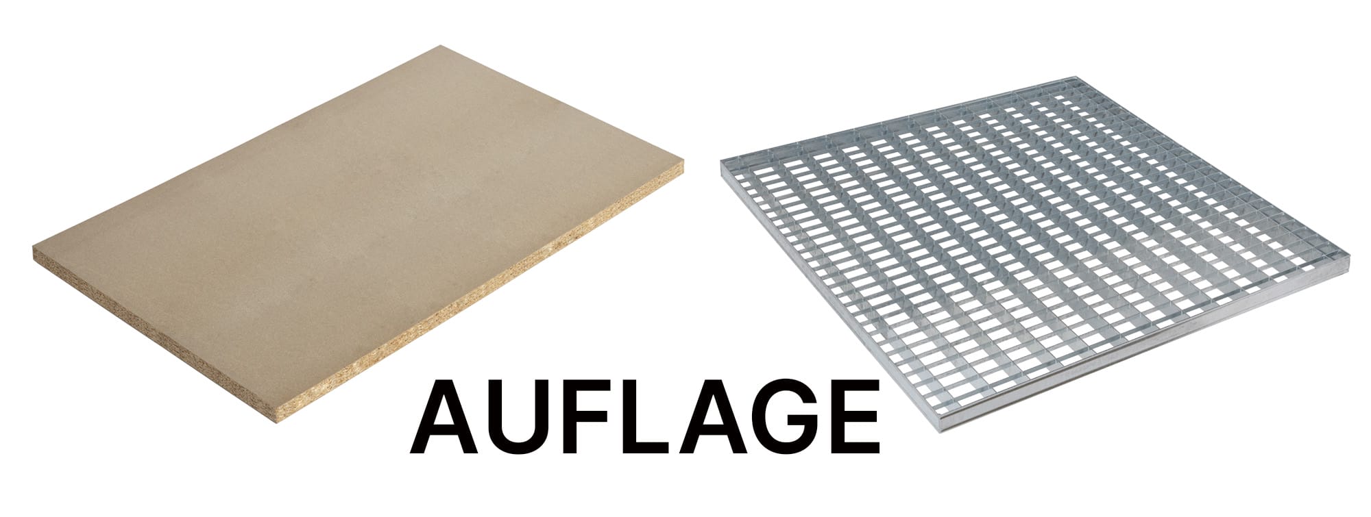Auflage RegalfeldWähle die passende Auflage für dein Regalfach aus. Wir bieten klassischerweise keine Auflage, z.B für das einlagern von Paletten, Spanplattenboden in 38 mm Stärke oder einen stabilen Gitterrostboden an.